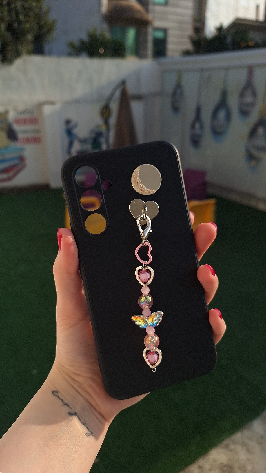 آویز موبایل پروانه و قلب قرمز کد P_39