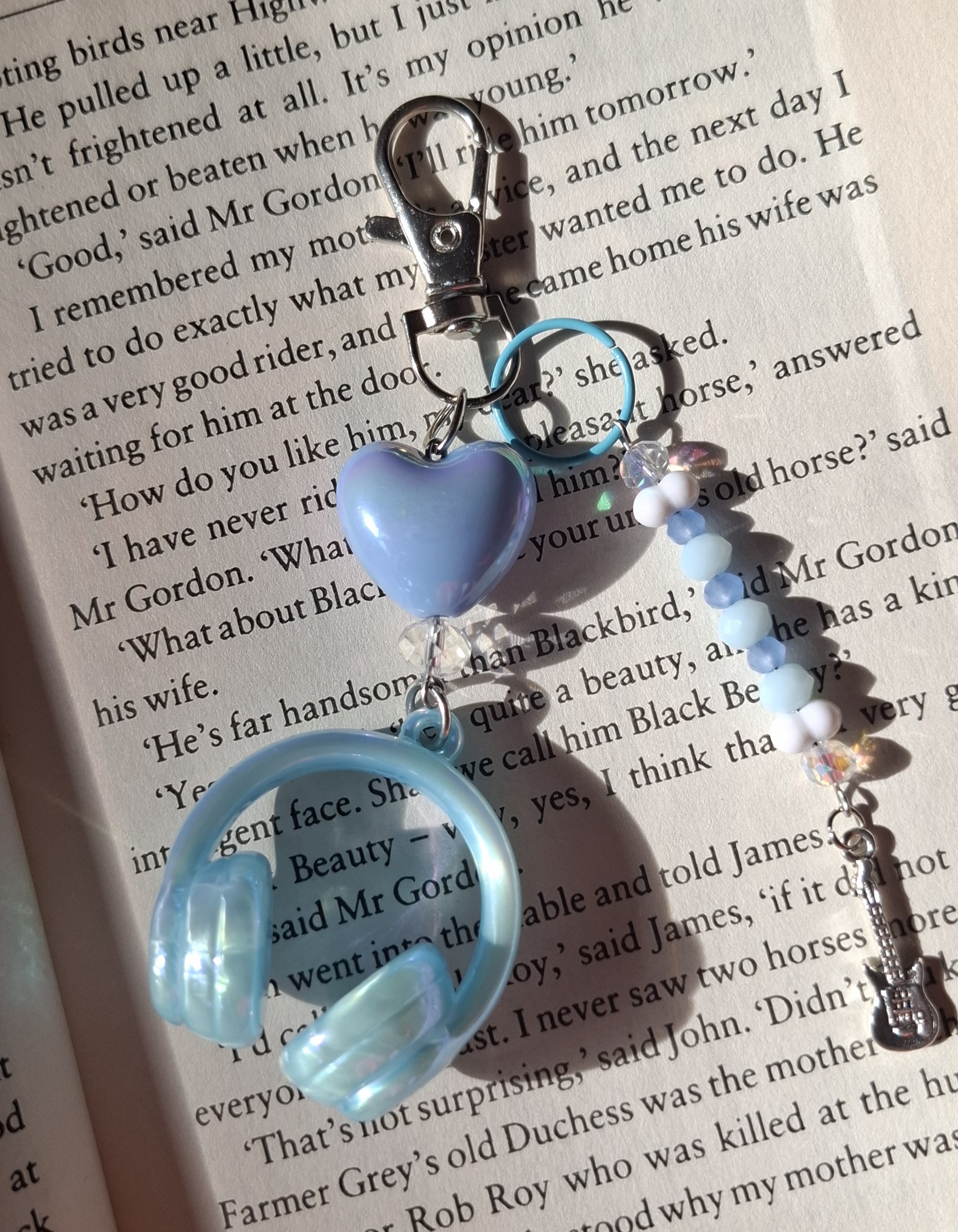آویز کیف و موبایل هدفون و قلب آبی با پلاک استیل گیتار کد B_57