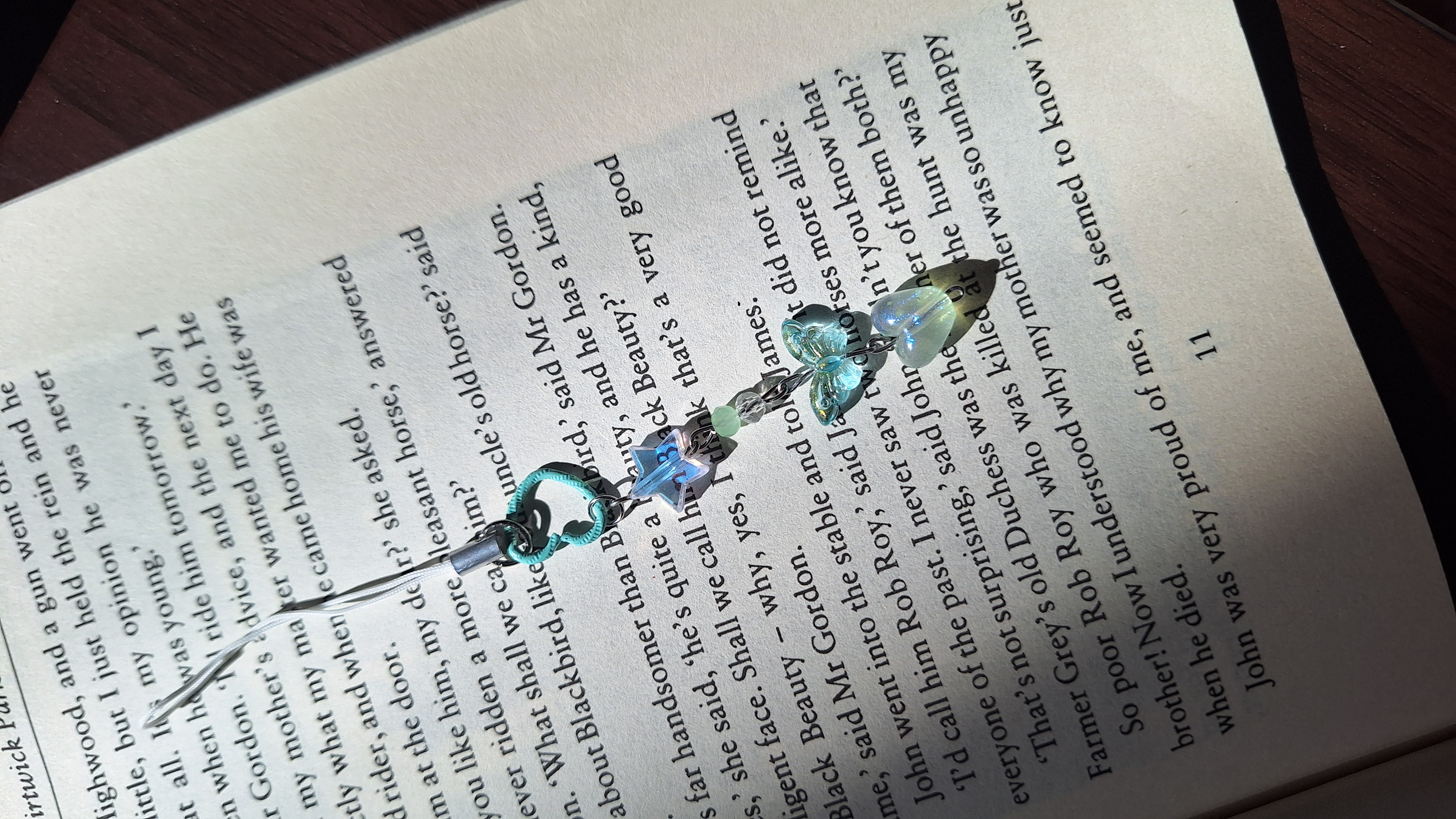 آویز موبایل پروانه و قلب شب تاب فیروزه ای کد P_42