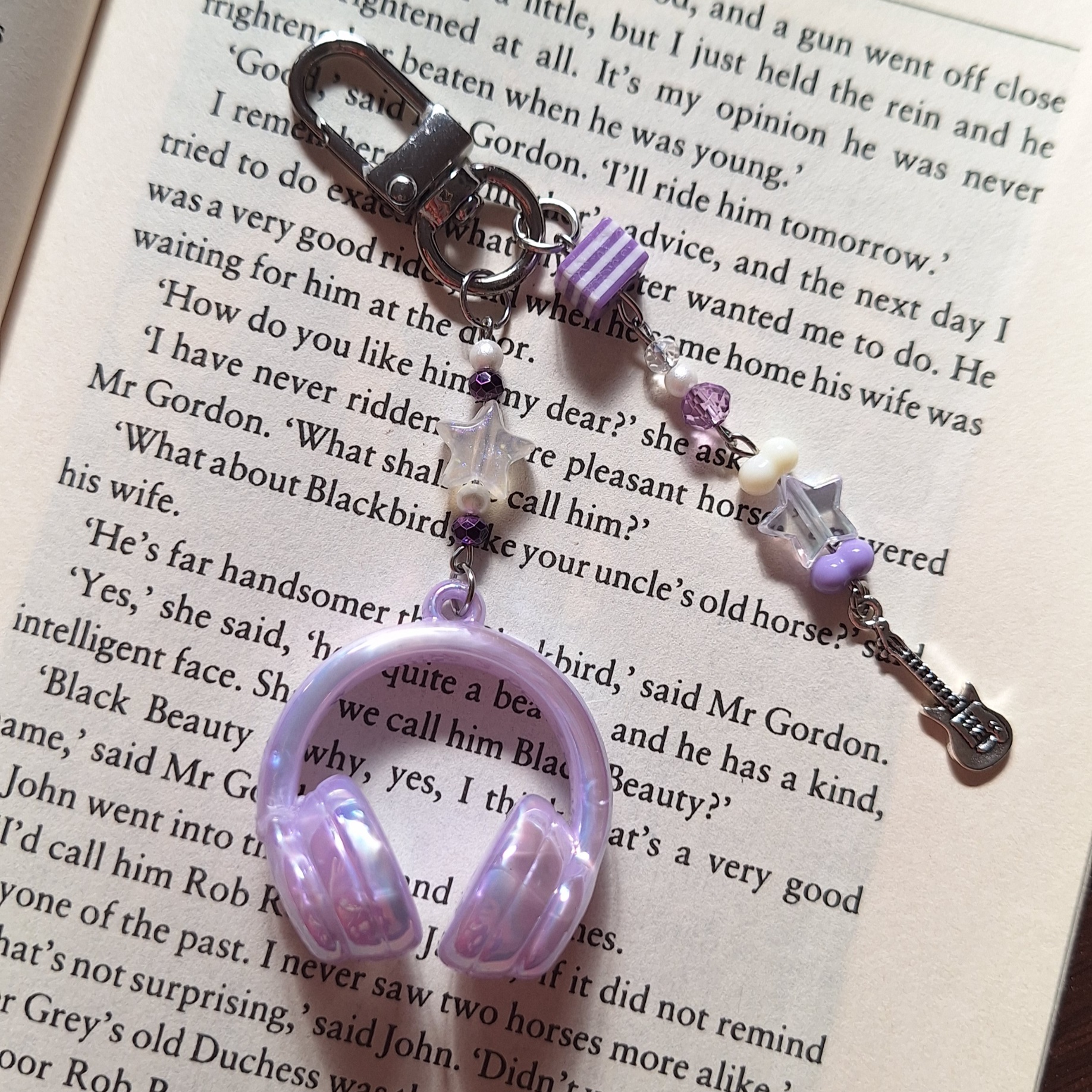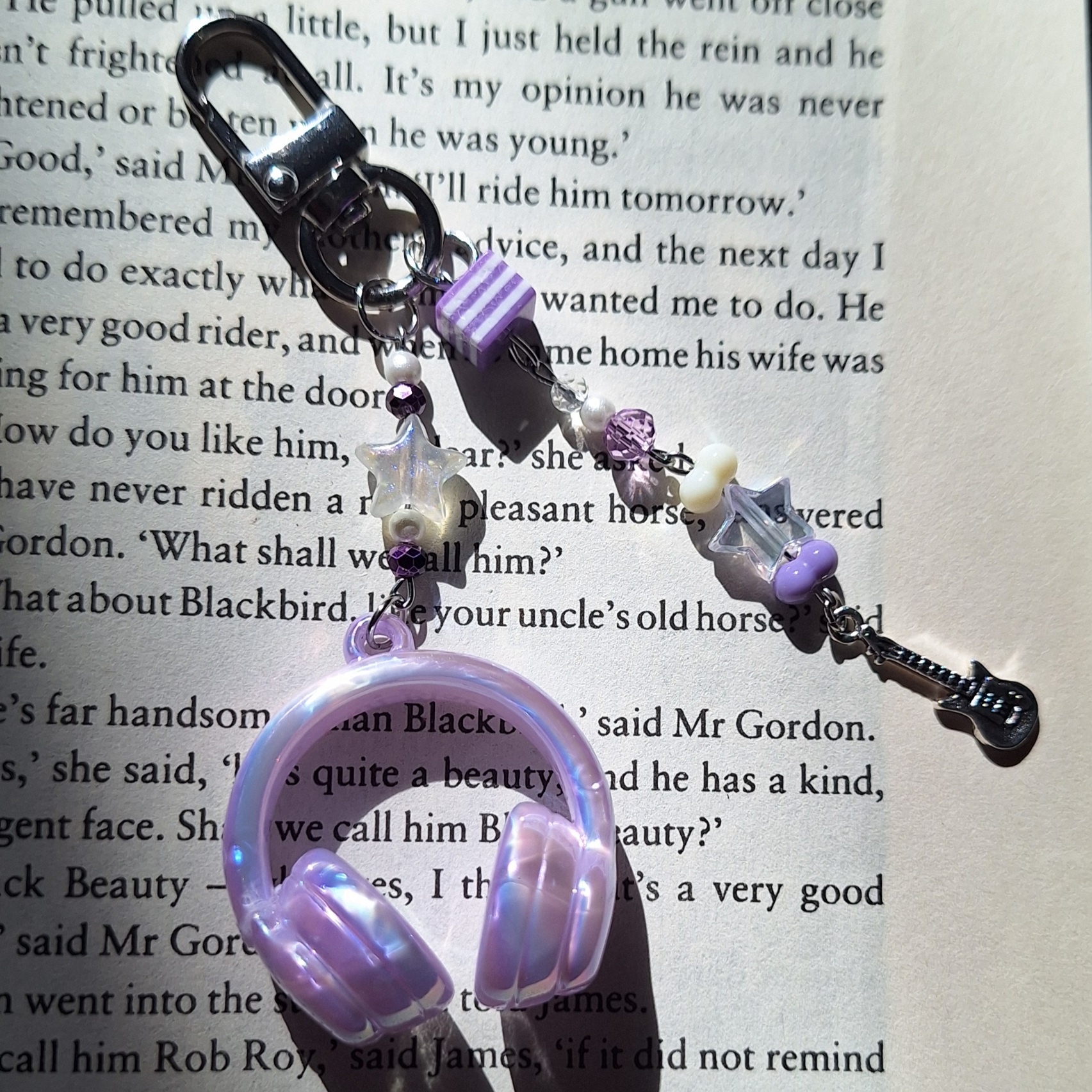 آویز کیف هدفون بنفش و پلاک استیل گیتار کد B_62
