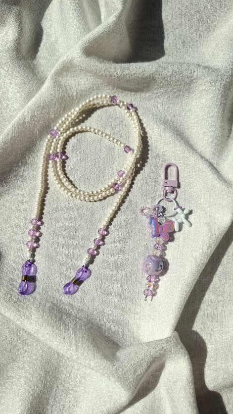 ست بند عینک و آویز موبایل(آویز کیف) بنفش 💜